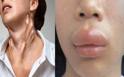 - сильно набухают все части лица и ротовой полости (губы, щеки, веки, язык, слизистая);